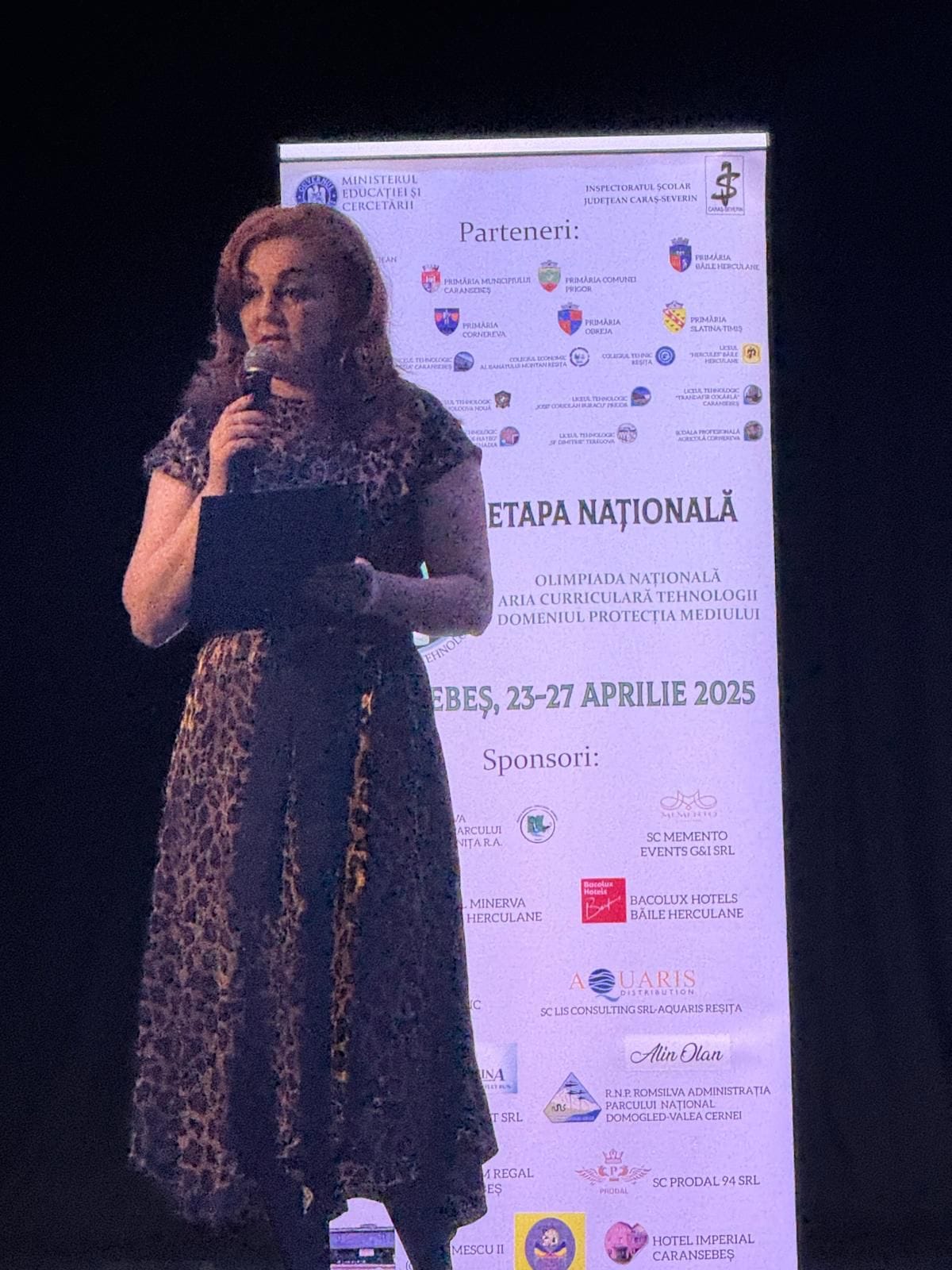 În cuvântul său la festivitatea de premiere a Olimpiadei Naționale de Protecție a Mediului, directorul Liceului Tehnologic „Dacia”, Prof. Baicociu Rusulescu Camelia a exprimat recunoștința față de toți partenerii implicați, subliniind angajamentul colectiv pentru un viitor sustenabil, într-un eveniment emoționant de încheiere a acestei prime ediții de neuitat.