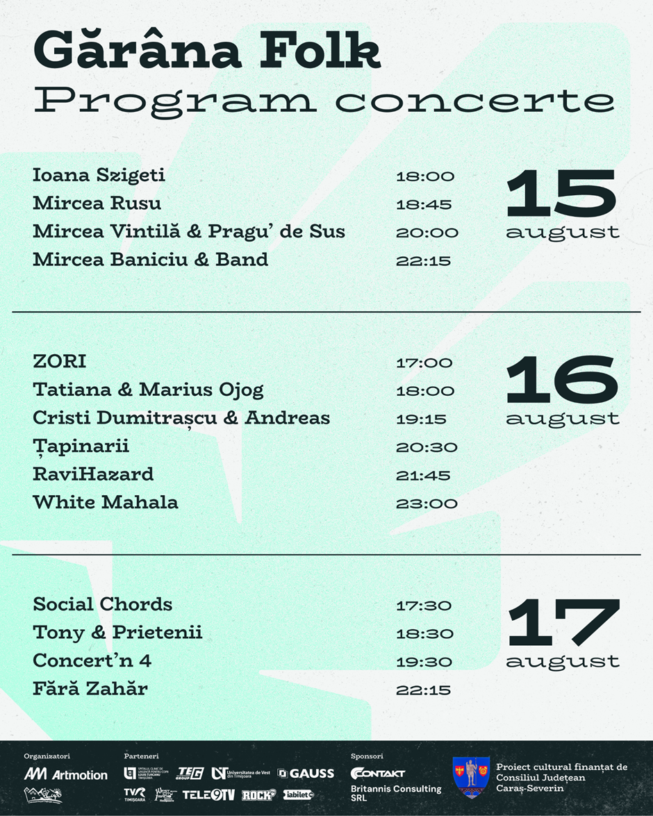 Important de menționat - Gărâna Folk 2025 este un proiect cultural finanțat de Consiliul Județean Caraș-Severin.