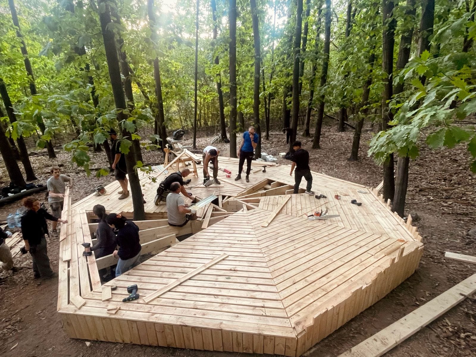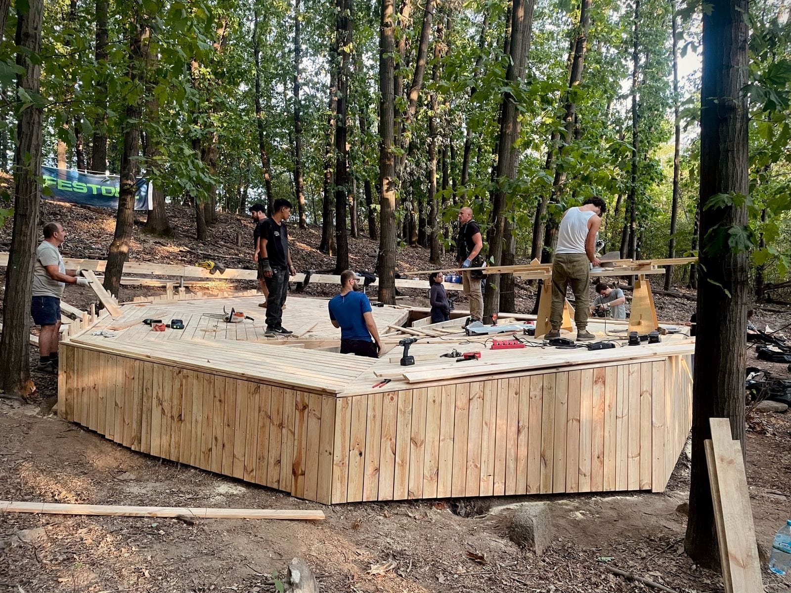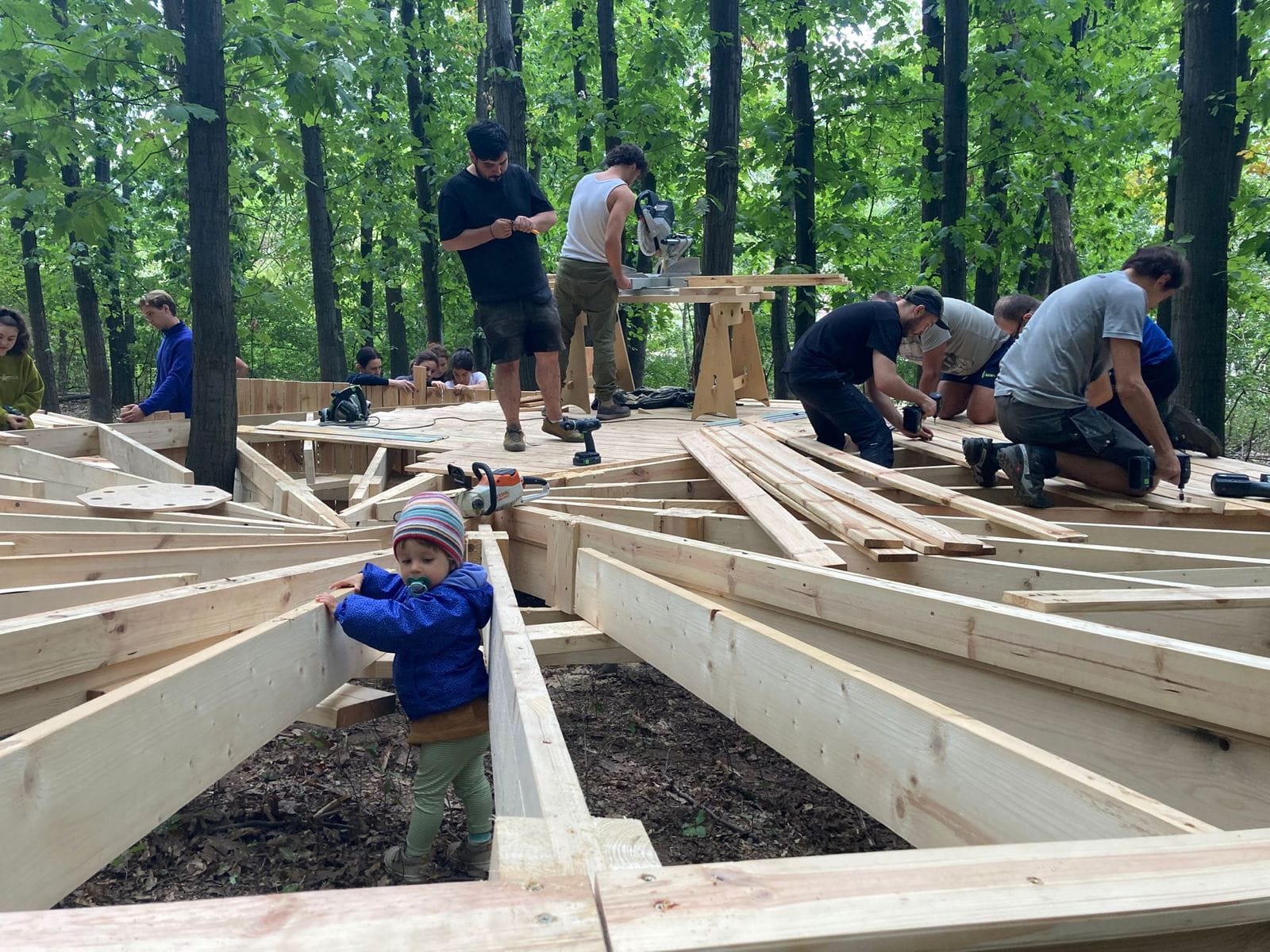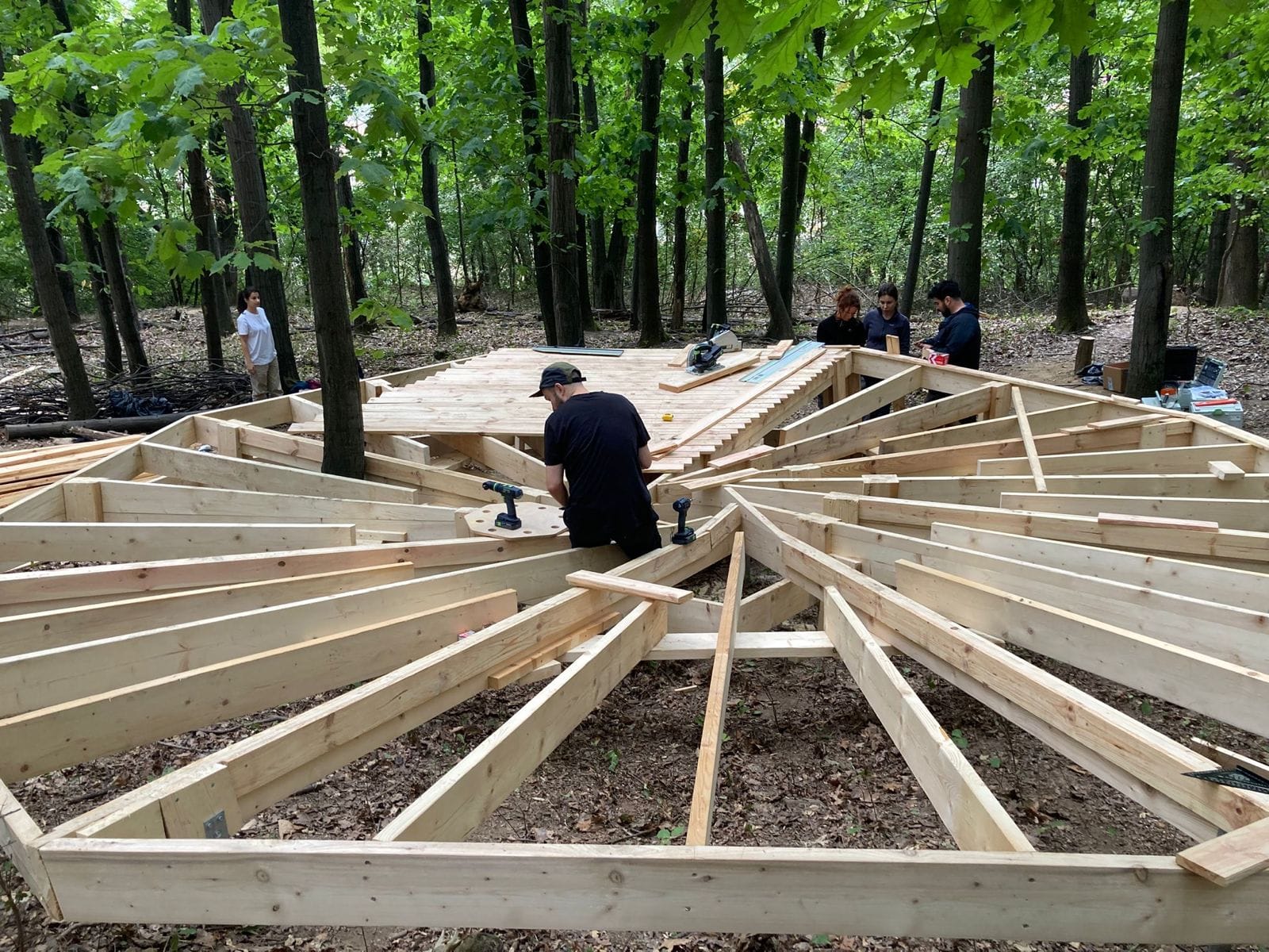 Lucrarea a fost coordonată de Atelier VAST, iar efortul a fost unul veritabil comunitar. La șurub și pană s-au alăturat voluntari de la ISU Caraș-Severin, elevi din cadrul Colegiului Tehnic Reșița, tineri arhitecți și designeri pasionați de construcții sustenabile, dar și locuitori care și-au dorit să contribuie la schimbarea în bine a orașului. Proiectul a beneficiat și de sprijinul unor parteneri privați precum Festool, Rothoblaas, Holver Romania și GDA ARTO SRL, iar hrana voluntarilor a fost asigurată de fermierii mici ai Cooperativei Gugulandia din Armeniș.