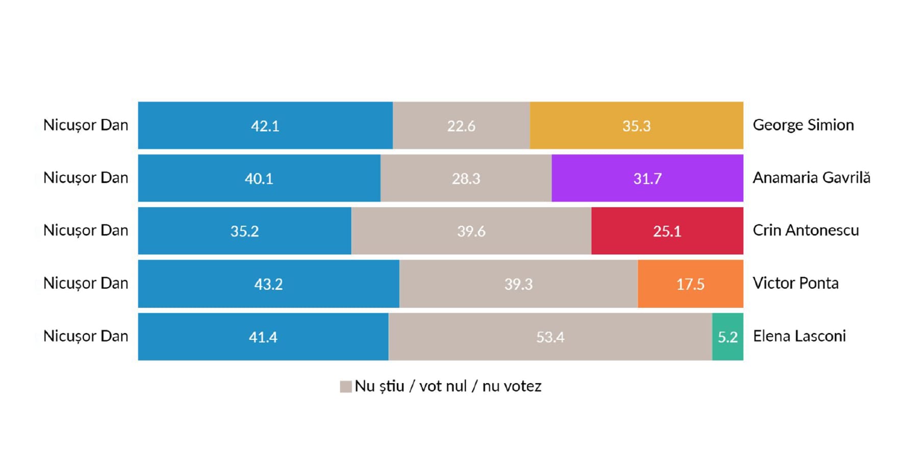 Cercetarea a analizat și un scenariu ipotetic pentru turul doi al alegerilor prezidențiale din 2024, oferind o imagine clară asupra preferințelor alegătorilor la acea vreme.