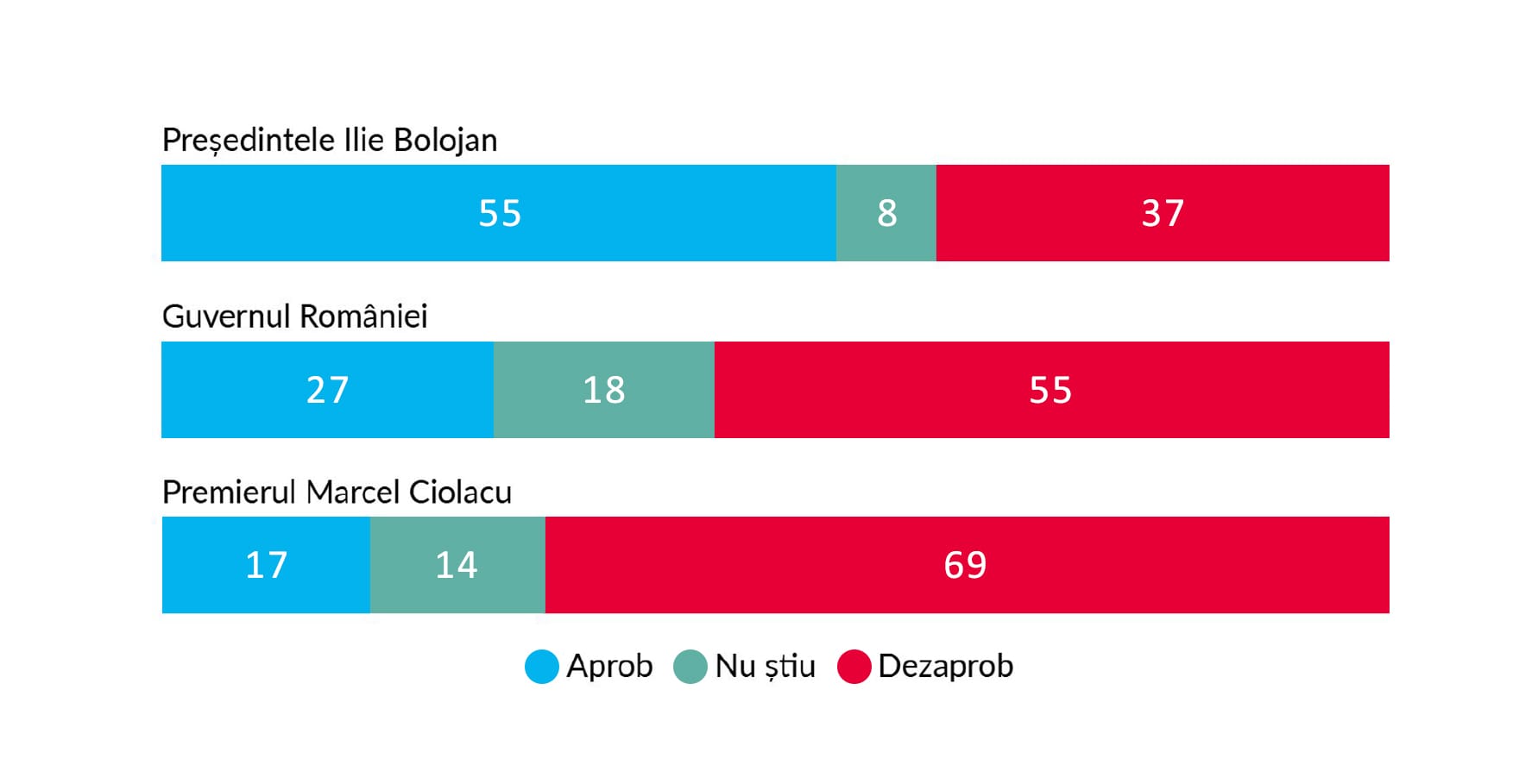Sondajul AtlasIntel a evaluat și gradul de aprobare al populației față de activitatea președintelui interimar Ilie Bolojan, a Guvernului și a prim-ministrului Marcel Ciolacu.