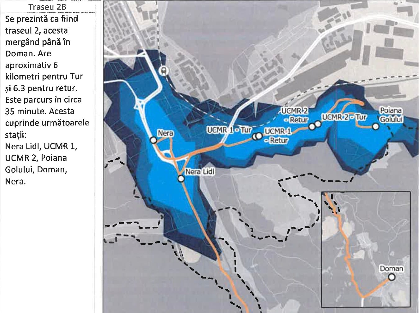 - Stația Nera Lidl – Poiana Golului (2 km): O soluție pentru școlarii din zonele deluroase, unde autobuzele standard nu puteau urca pe drumurile înguste.