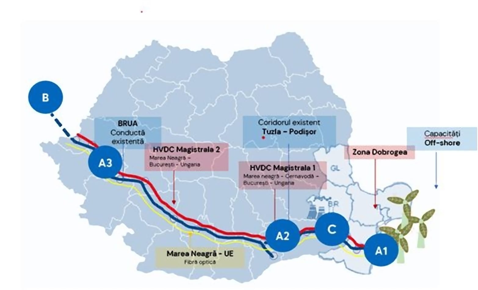 Sistemul HVDC, considerat „autostrada subterană a energiei”, permite transmiterea a până la 1.100 km de curent continuu, cu pierderi minime, conectând Marea Neagră de rețelele europene prin București și granița de vest a țării. Acest coridor nu doar că va transporta energia verde generată de viitoarele parcuri eoliene offshore din Marea Neagră și de reactoarele 3 și 4 de la Cernavodă, dar va asigura și exportul către Europa Centrală, transformând România într-un nod energetic esențial.